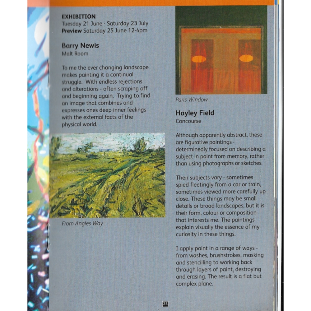 Barry Newis and Hayley Field exhibited paintings at The Cut in June/July 2011.
