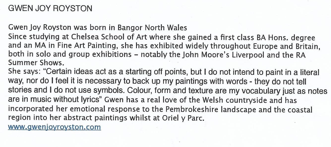 Gwen Joy and Bob Royston exhibited paintings at The Cut in September/October 2014.