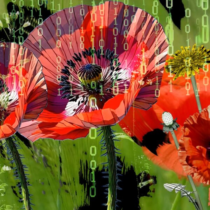 Jane Prophet’s new installation immerses visitors in larger-than-life paper blooms of local species lit by lush AI-generated videos, celebrating plant–human kinship.